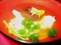 吸い地を熱くしてから、お椀に張る。柚子を上に飾り、完成 |