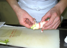 さらに豚バラ肉で巻いて行く |