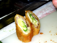 材料 4人分 グリーンアスパラ 4本 プロセスチーズ(10cm長さの棒状) 8本 スライスチーズ(溶けないタイプ) 8枚 豚バラ肉(1〜2mm厚さ) 8枚 フライ用に 小麦粉 パン粉 卵 揚げ油 飾り用に サニーレタス レモン パセリ ソース(合わせる) 中濃ソース 180cc ウスターソース 60cc ケチャップ 20cc マヨネーズ 20cc レモン汁 少々 |