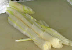 ねぎは縦半分に切ってから、3cmほどに切る |