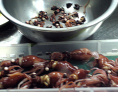 ほたるいかは目玉と口を取り除いておく |