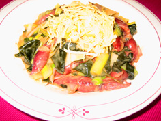 上に薄焼き卵を天盛りにして完成 |