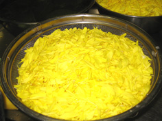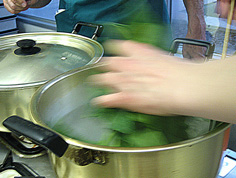 沸騰した湯に酢を少々入れて黄菊をさっと茹で、水にとって冷まし、絞る |