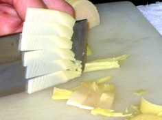ゆで筍は薄く切る |
