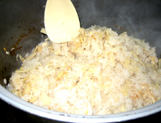 米に分量の水と調味料、筍、油揚げを加えて炊き上げる |