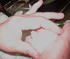 ご飯を小さな俵型に握る |