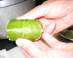 桜の葉で包む |