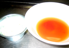 Bの調味料を合わせる。(隣の片 粉は前の海老用) |