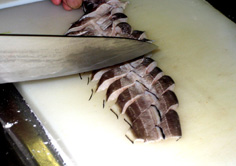 あなごの尾の方を斜めに切る |
