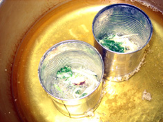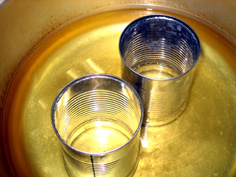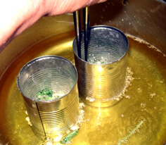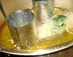 油の中に空き缶を入れ、熱くしておく |