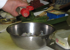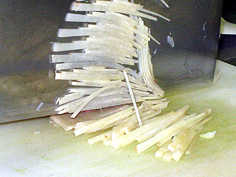 長ネギはみじん切り。1/3ほど、飾りに取り分けておくこと |