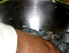 揉む感じで(力は入れない)混ぜる。粘りが出るまで |