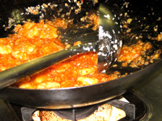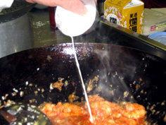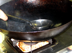 鍋を良く焼き、油を入れて煙が出るくらいに熱して、馴染ませる |