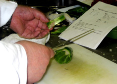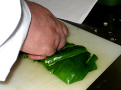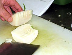 たけのこは外側のイボイボを切り除き、真ん中のところは切り落とす(スープ等に利用) |