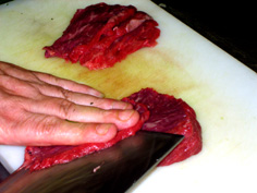 牛肉の塊は繊維に沿って薄く切る |