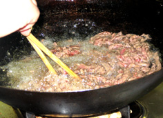 牛肉を入れ、箸でよくほぐす |
