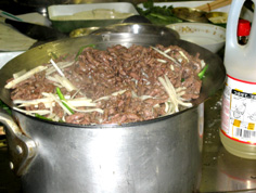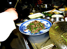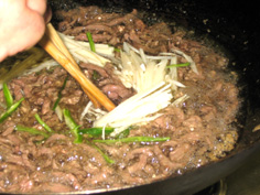 次に牛肉とたけのこを戻し入れ |