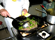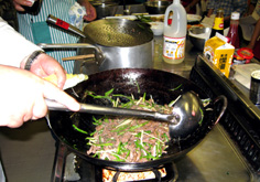 用意した合わせ調味料を加えて、一気に仕上げる |