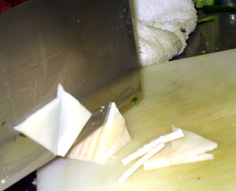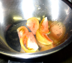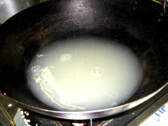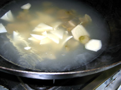 ザーサイを入れ、香りと塩気を引き出すため、少し煮込む |