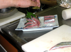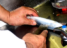 秋刀魚の1枚目は、真ん中を縦に切る |