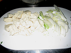 豆腐は手で粗く崩し、ネギは斜め薄切り |