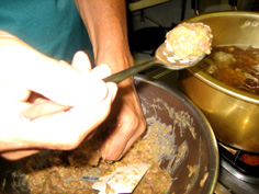 擂り鉢に入れ擂る |
