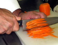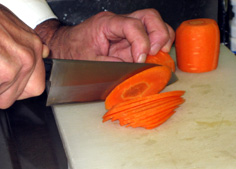 人参は皮をむき、斜め薄切り |