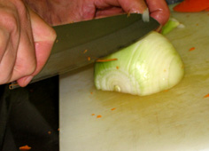 玉ねぎは根元を残して縦に切る |