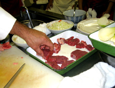 肉を皿に盛る |