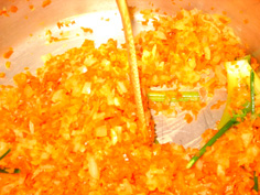 別の厚手の鍋にサラダ油少々を入れ、人参と玉ねぎを炒める |