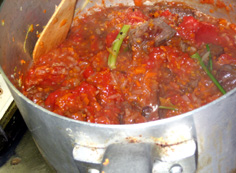 トロトロに煮詰まって来たところ。塩、胡椒で味を整える |