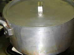 蓋をして、肉が柔らかくなるまで煮込む |