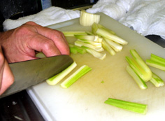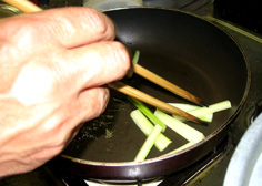 その間に、セロリの皮をむく |