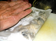キッチンペーパーでしっかり水気を拭く。潰さないように |