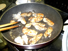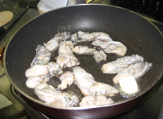 サラダ油少々を熱し、強火でオイスターを焼く |