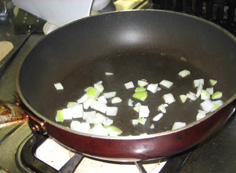 綺麗なフライパンにサラダ油少々を入れ、玉ねぎを炒める |