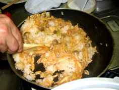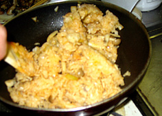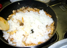 ご飯を加えて、ほぐしながら炒める |
