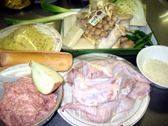 材料 4人分 手羽先 8本 曲がりネギ 1本 キャベツ 1/4個 エリンギ 1パック しめじ 1/2パック 中華麺 2玉 鶏つくねの材料 鶏もも肉の挽肉(2度挽き) 玉ねぎ1/4個 生パン粉 一つまみ 生姜汁 小さじ1 塩 少々 コショウ 少々 水溶き片栗粉 少々 薬味類 ポン酢・浅つき・紅葉おろし等適宜 |