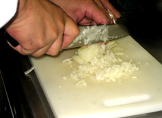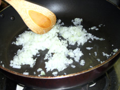 酒少々を加えて火にかけ、玉ねぎに軽く火を通し、酒炒りをする |