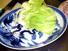大皿に、大きく切ったキャベツを奥にこんもりと盛る |