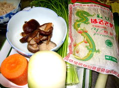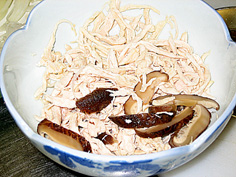 鶏ささみはほぐし、椎茸は薄く切る |