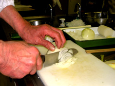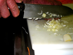 次に端から切ってゆくと微塵切りになる |