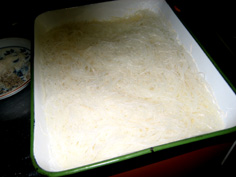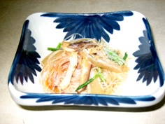 春雨は戻し、食べ易い長さに切ってから胡麻油少々をまぶす |