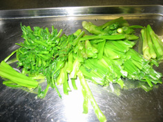 セリは茹でて3cmに切りそろえる |