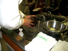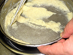 裏ごしの底の下についているのも、忘れずに丁寧に取る。石川先生「この段階で冷凍しておくと便利」 |