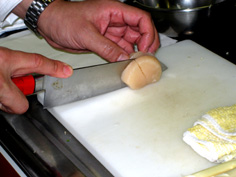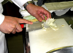玉ねぎは繊維を切るように。甘みと旨みが良く出る |