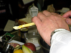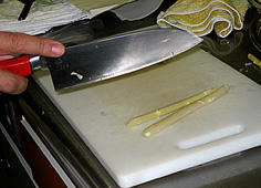 ホワイトアスパラの穂先は飾り用として、一人1本取り除いておく |