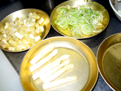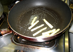 下茹でしておいたホワイトアスパラの穂先を軽くソテー |