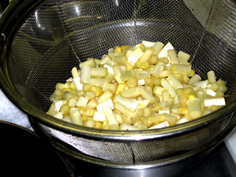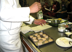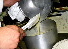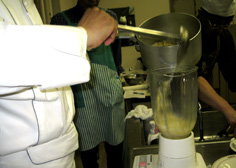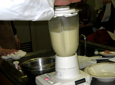 裏ごしにかけて口あたりを良くする。石川先生「家庭では裏ごしせずに舌触りを楽しんでもいいですよ」 |