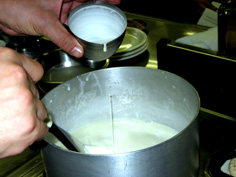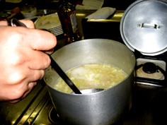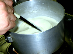 火にかけて熱くする。鍋底から丁寧にまぜて焦がさないように |